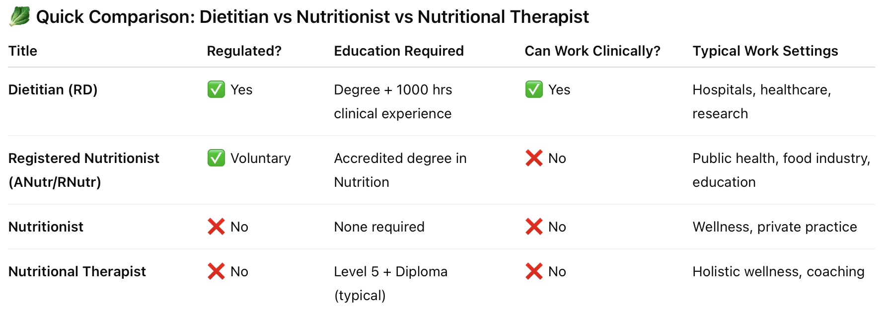 👉 In short: Dietitians are the only nutrition professionals qualified to diagnose and treat health conditions using food and nutrition.